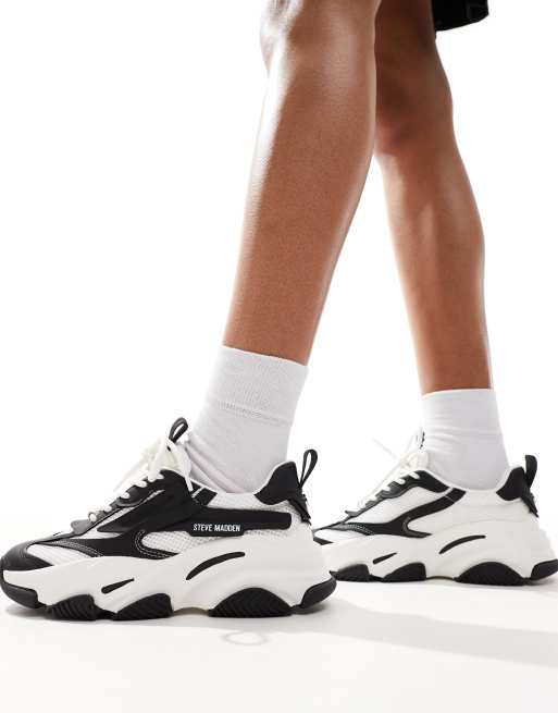Zapatillas deportivas negras y blancas con suela gruesa Possession-E de Steve Madden