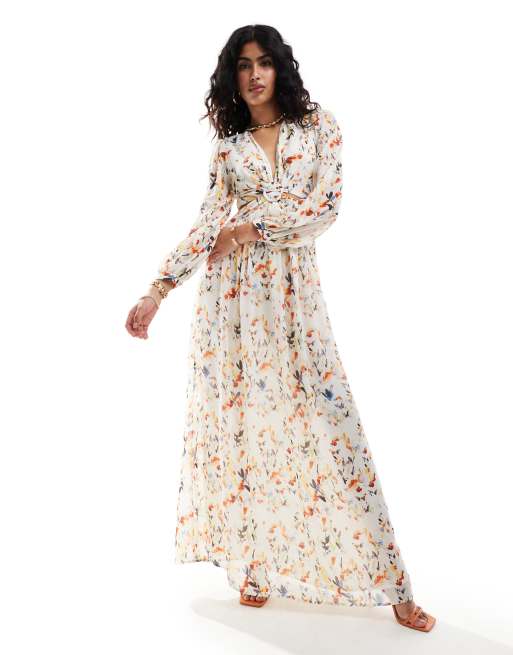 Vestido largo con detalle de abertura y estampado floral de Style Cheat
