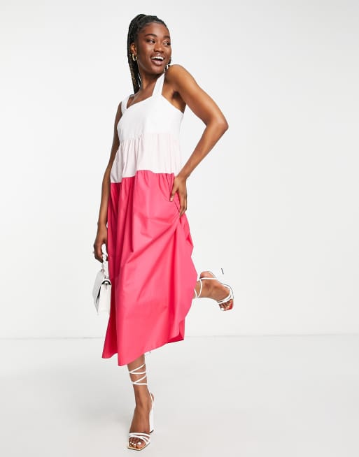 Vestido veraniego midi rosa escalonado con diseño color block de Style Cheat