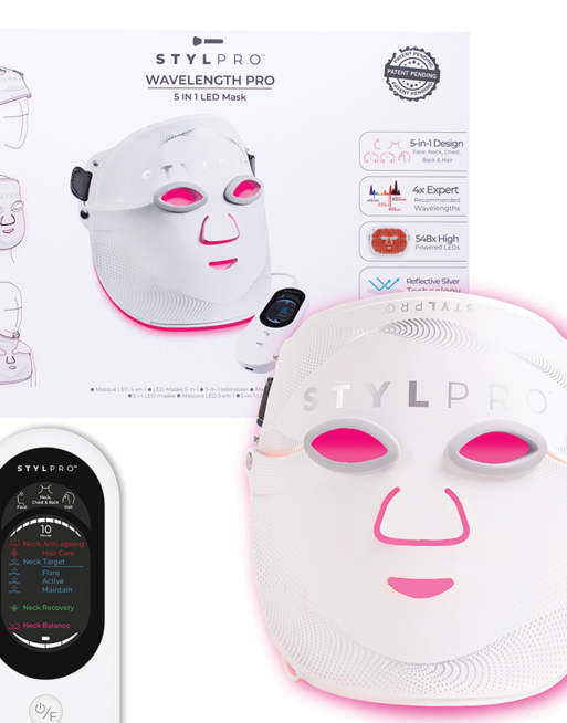 Máscara facial blanca con luces LED 5 en 1 WaveLength Pro de StylPro