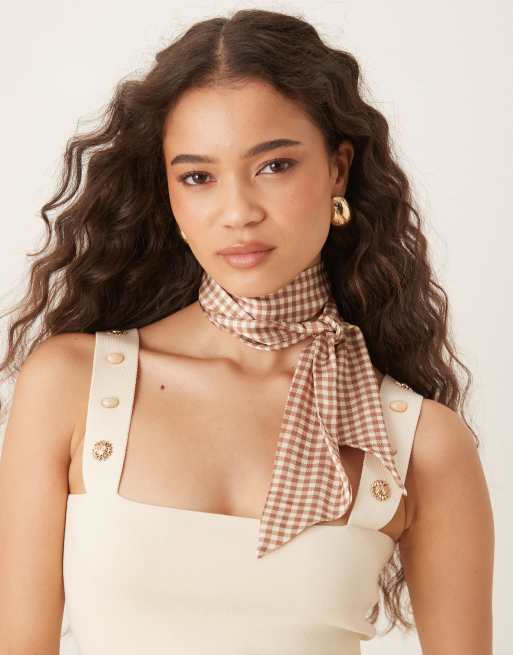 Fular estrecho a cuadros vichy beis de Sui Ava