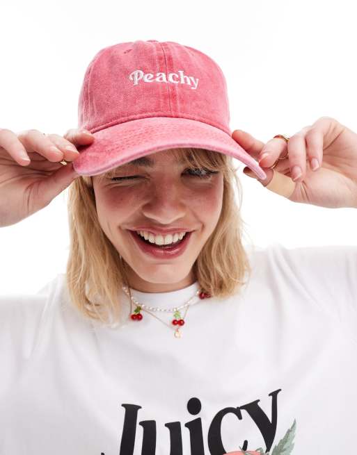 Gorra rojo lavado con texto "Peachy" Everyday de SUI AVA