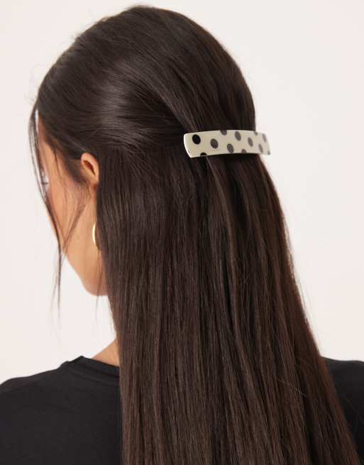 Pasador para el cabello negro y blanco alargado con estampado de lunares de Sui Ava