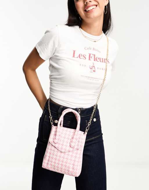 Bandolera pequeña rosa con estampado de pata de gallo de SVNX