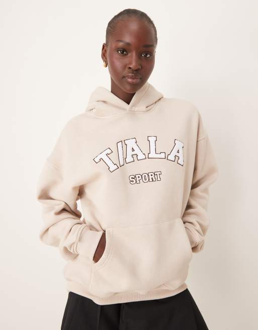 Sudadera beis con capucha y aplicación "Active" de Tala