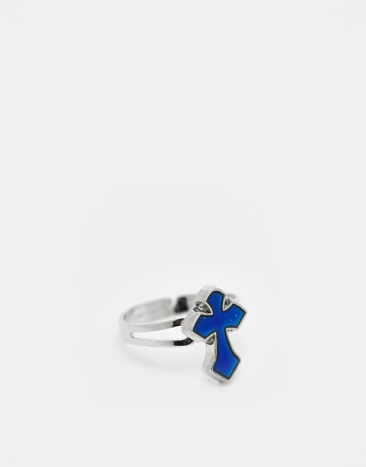 Anillo plateado en forma de cruz con piedra del humor de Tammy Girl