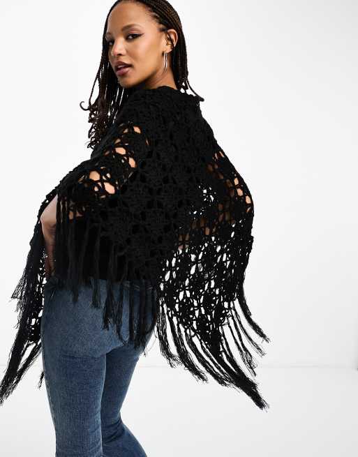 Poncho negro de estilo retro de los años 2000 de croché de Tammy Girl