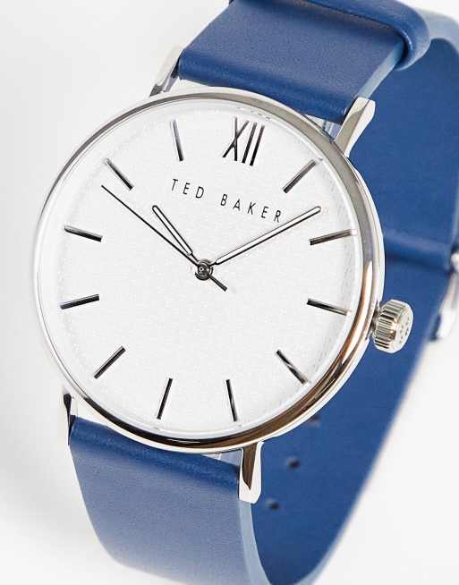 Reloj con esfera blanca y correa azul de cuero auténtico de Ted Baker
