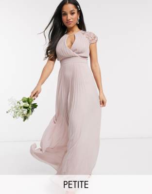 Vestido largo de dama de honor con mangas de encaje en rosa de TFNC Petite