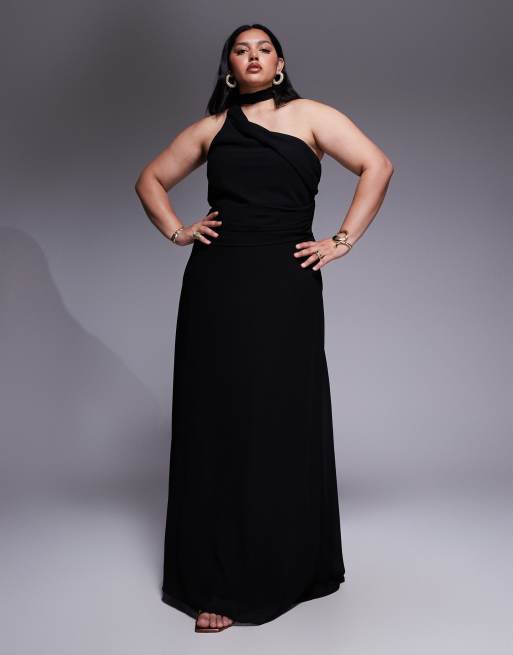 Vestido largo negro asimétrico con pañuelo al cuello de TFNC Plus