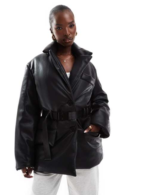 Abrigo negro acolchado estilo americana de cuero sintético de The Couture Club