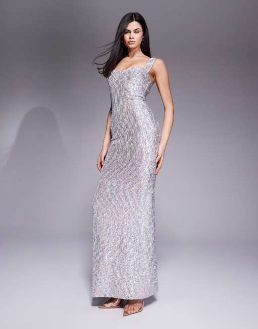 Vestido largo plateado con detalle de copas de lentejuelas Antonia de The Dolls House Circa