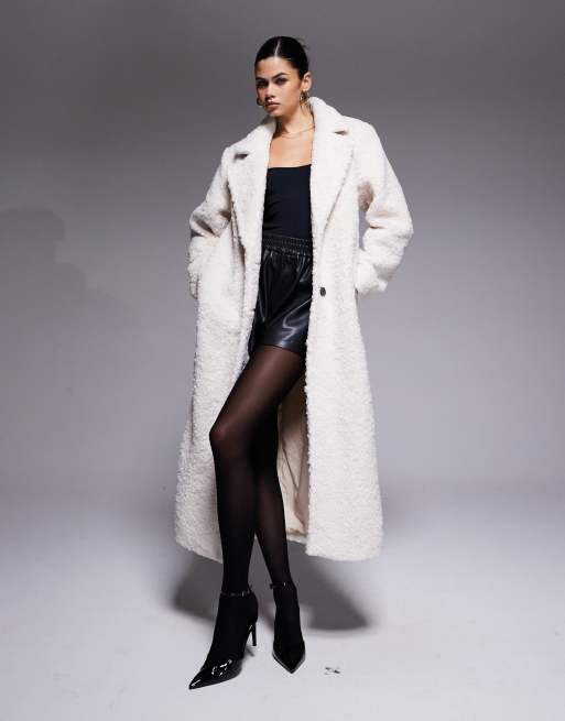Abrigo largo color crema con solapas de tejido efecto peluche exclusivo de The Frolic