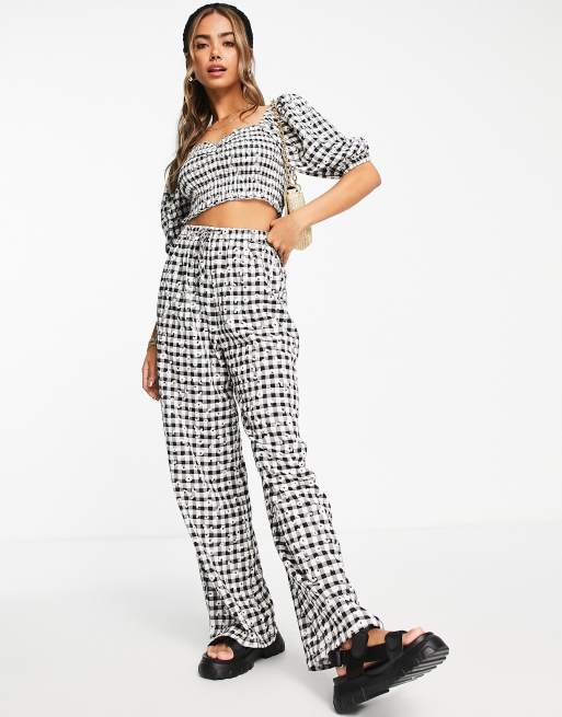Pantalones monocromáticos a cuadros vichy con lazada en la cintura de The Frolic (parte de un conjunto)