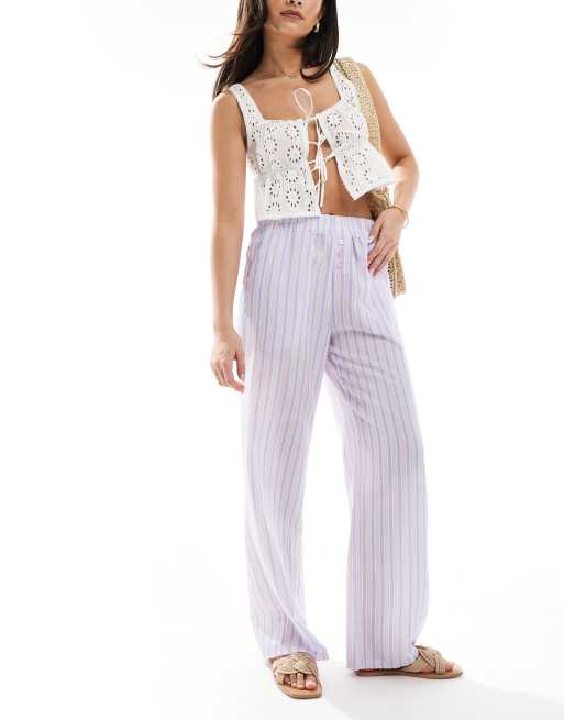Pantalones playeros rosas y azules a rayas de pernera ancha con cinturilla estilo bóxer de tejido texturizado exclusivos de The Frolic