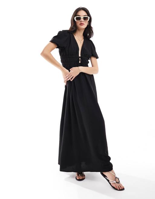 Vestido playero largo negro con detalle de lazada Yasha de The Frolic