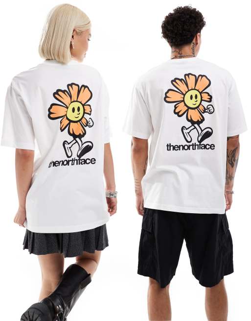 Camiseta blanca extragrande con estampado trasero de flor de The North Face