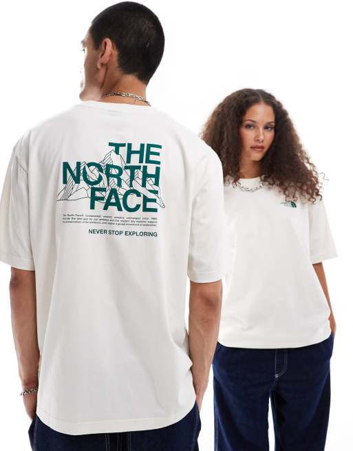 Camiseta blanco hueso extragrande con estampado de montaña delineada en la espalda de The North Face