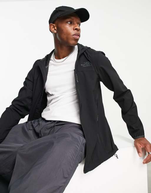 Chaqueta negra resistente al viento con capucha de SoftShell Nimble de The North Face