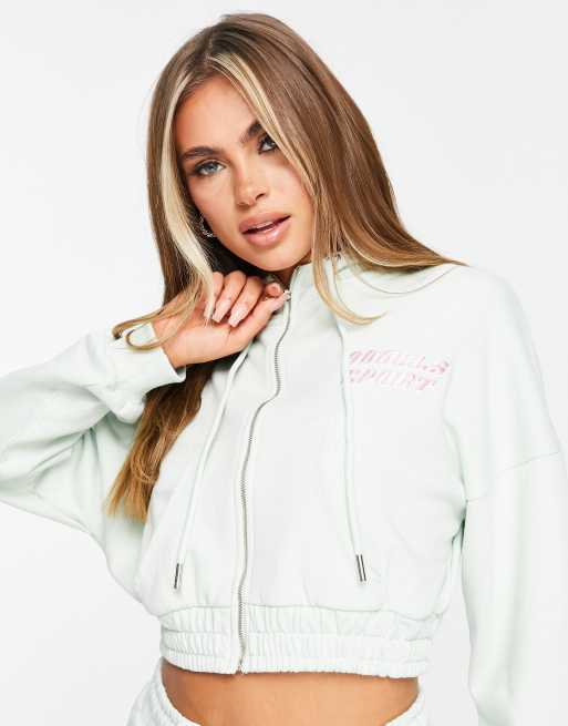 Sudadera corta verde menta con laterales fruncidos y detalle estampado Sportswear de ODolls Collection