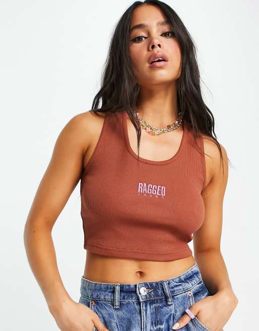Camiseta de tirantes con diseño encogido y logo bordado de canalé de The Ragged Priest