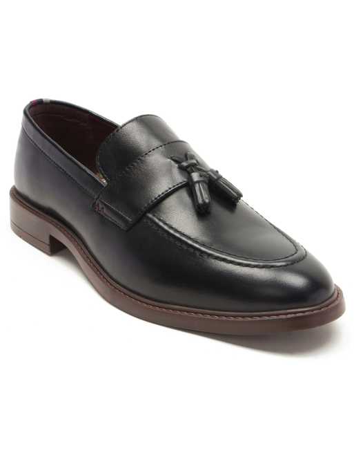 Mocasines negros sin cierres con detalle de borlas de cuero Clayton de Thomas Crick