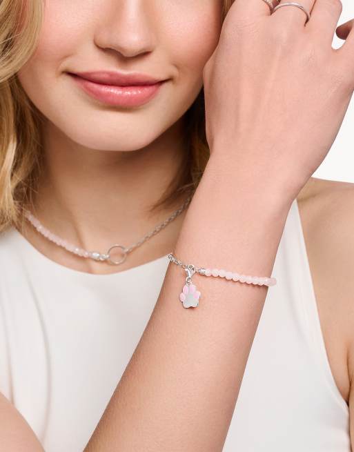 Pulsera de plata de ley con cuentas de cuarzo rosa y charm de moneda Charmista de Thomas Sabo