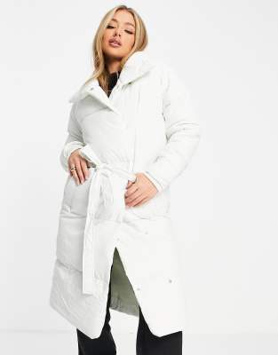 Abrigo extragrande largo blanco hueso estilo edredón con cinturón Coral de Threadbare