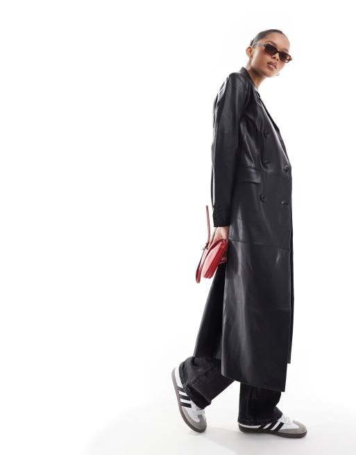 Abrigo largo negro de cuero sintético de Threadbare