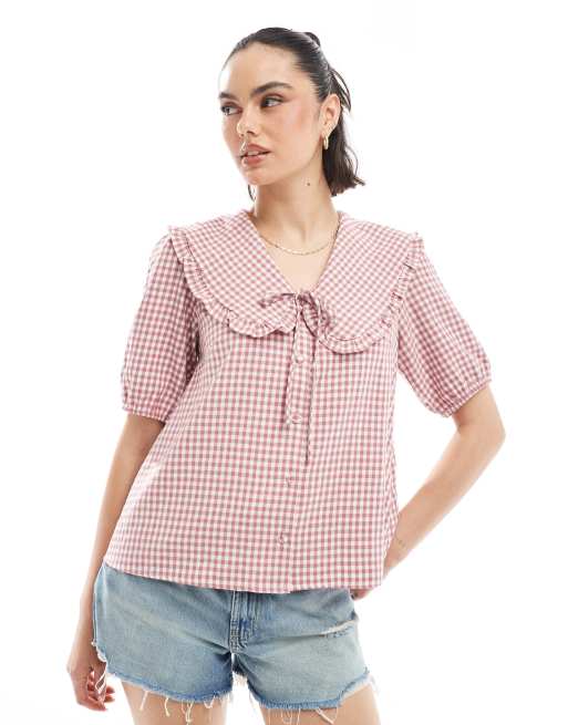 Blusa a cuadros vichy rosas con solapas extragrandes de Threadbare