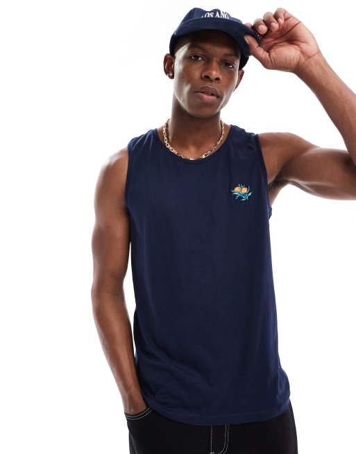 Camiseta azul marino sin mangas con bordado de naranja de Threadbare