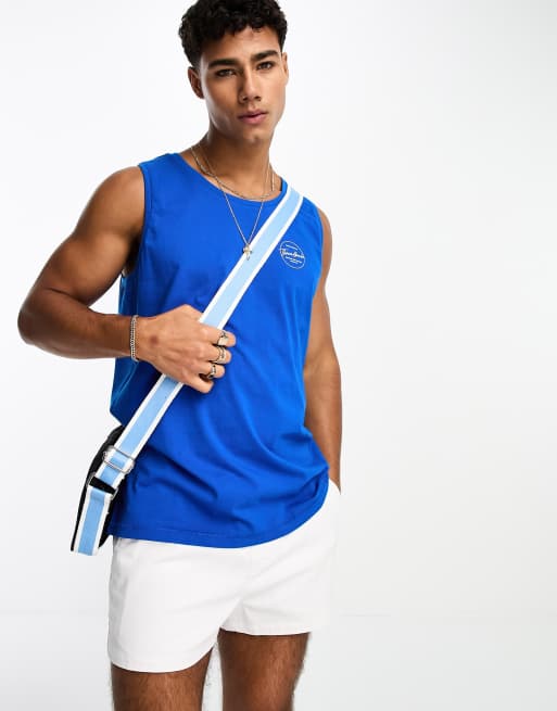 Camiseta azul sin mangas con logo estampado de Threadbare