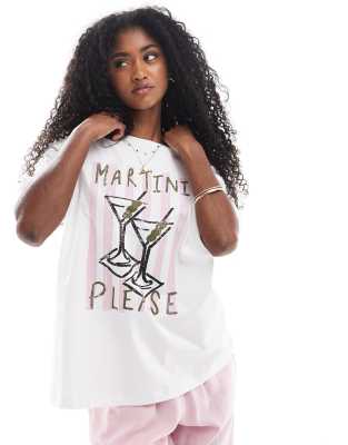 Camiseta blanca y rosa extragrande con estampado gráfico de cócteles de algodón de Threadbare