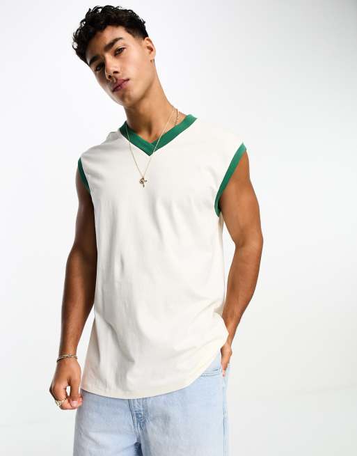 Camiseta blanco hueso extragrande sin mangas de Threadbare