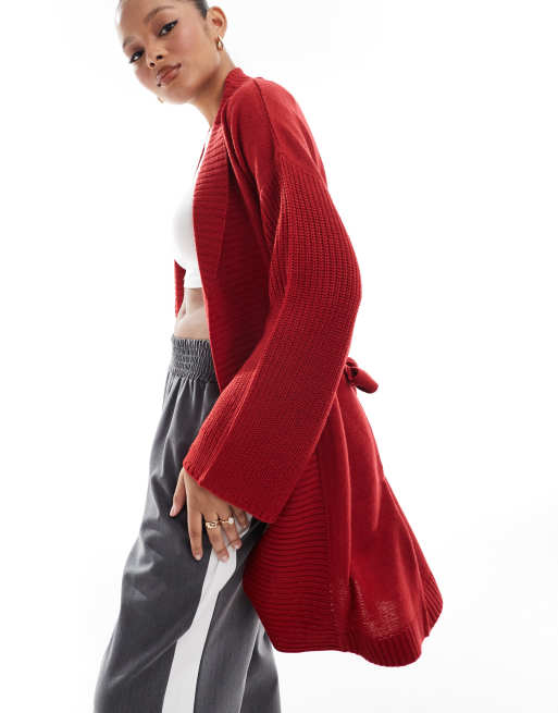 Cárdigan rojo con cuello esmoquin y lazada delantera de Threadbare