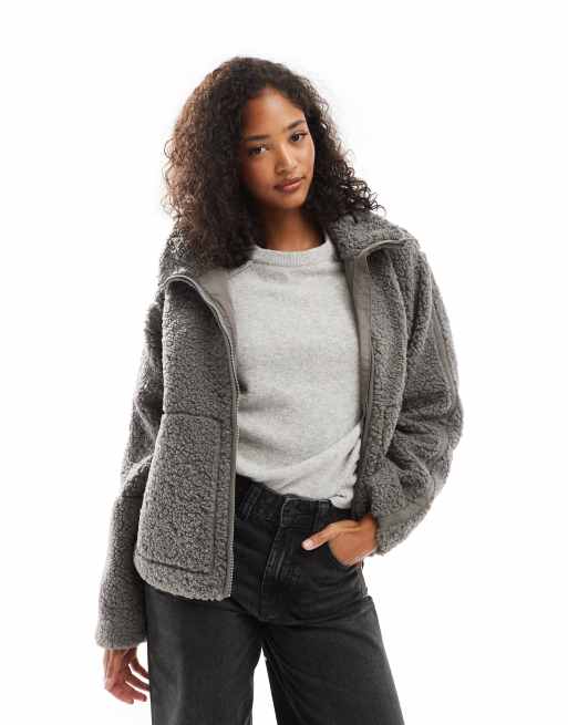 Chaqueta gris con cremallera de borreguito de Threadbare