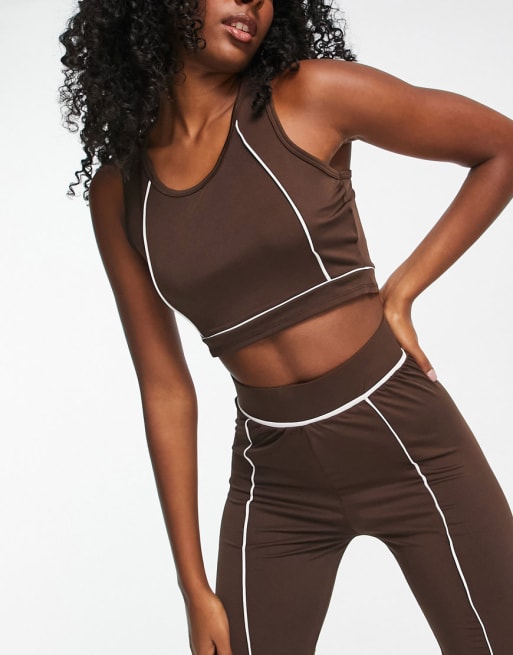 Conjunto deportivo marrón chocolate con costuras en contraste de Threadbare Fitness