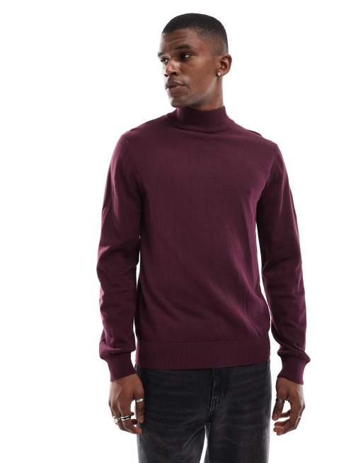 Jersey burdeos con cuello alzado de algodón de Threadbare