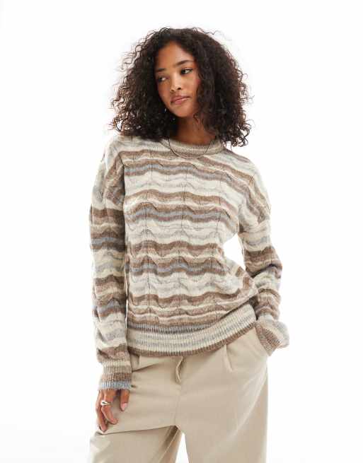 Jersey marrón a rayas de punto grueso de Threadbare
