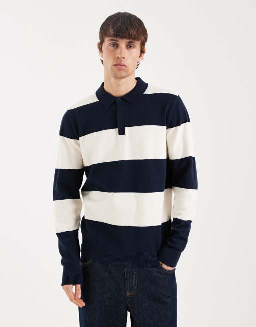 Polo azul marino y crudo a rayas de estilo rugby de punto de Threadbare