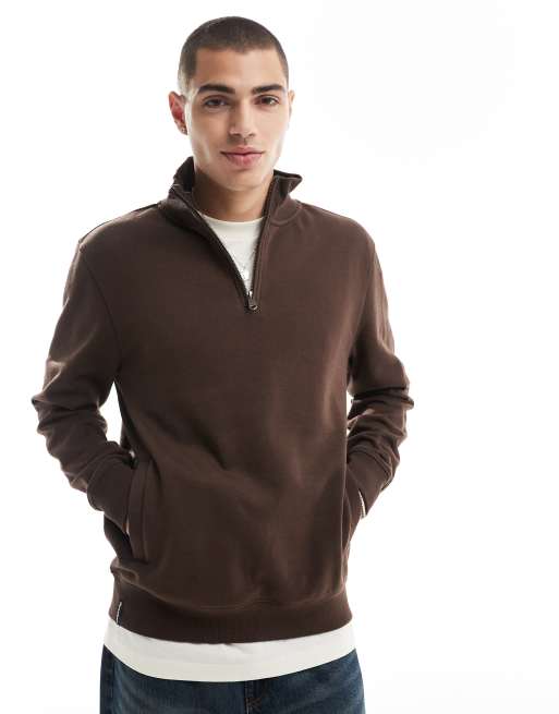 Sudadera marrón chocolate con cremallera corta de Threadbare