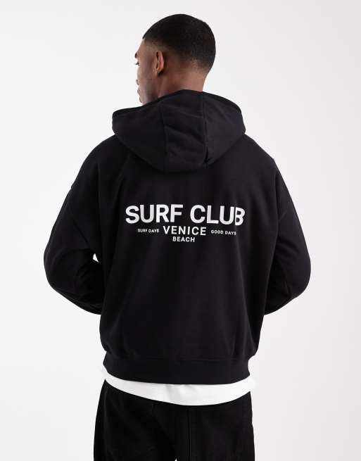 Sudadera negra holgada con capucha y estampado gráfico de Threadbare