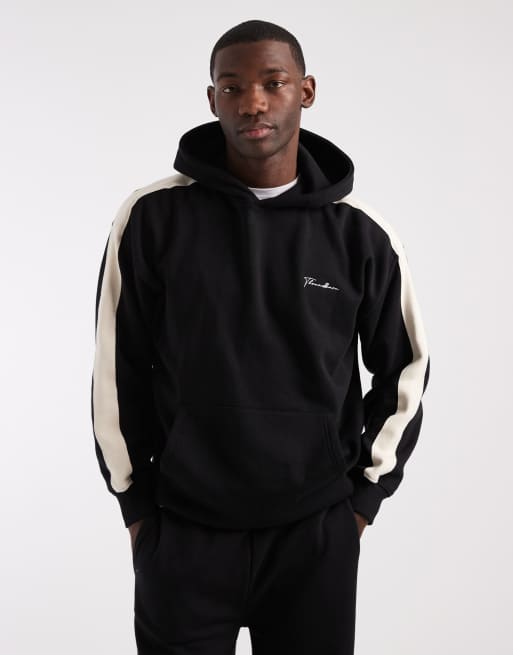 Sudadera negra holgada con capucha y franja lateral de Threadbare