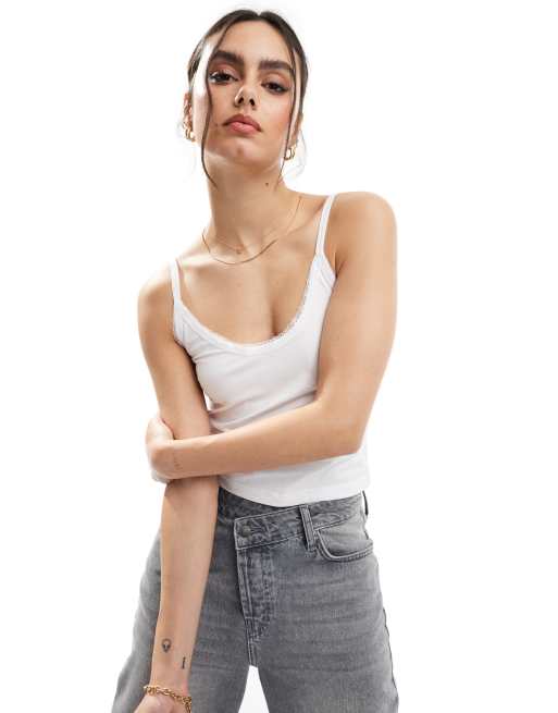 Top blanco de tirantes con ribete de encaje de Threadbare