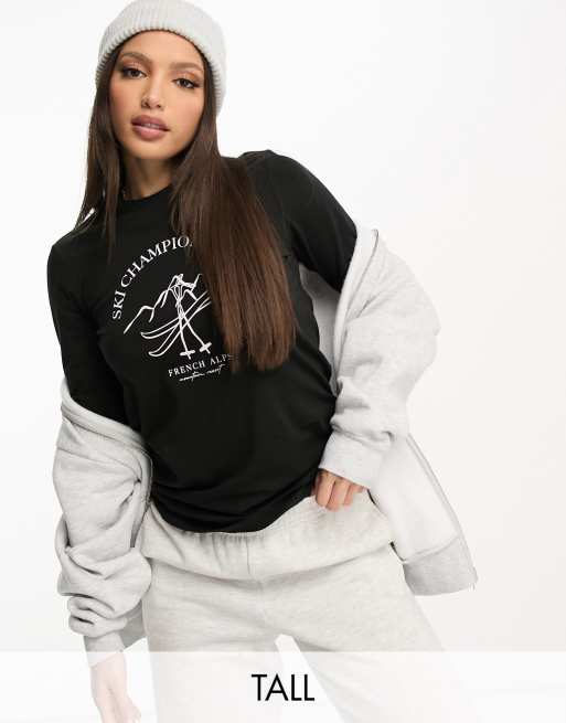 Top interior negro de manga larga con estampado de Threadbare Tall Ski
