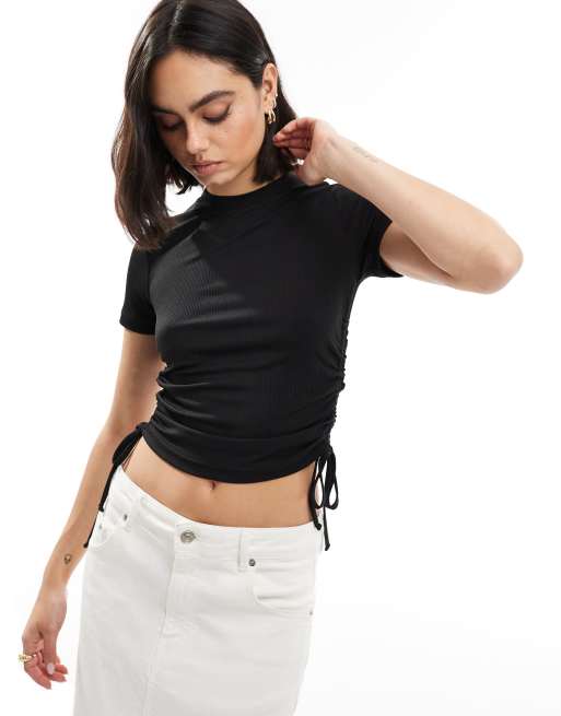 Top negro con lazadas laterales de canalé Pauly de Threadbare