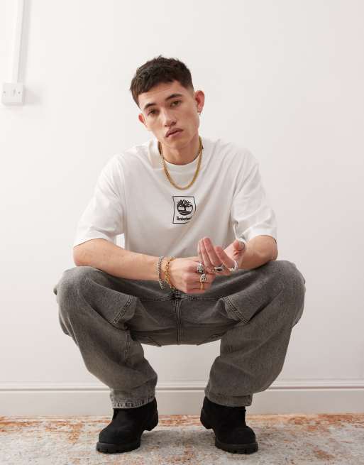 Camiseta blanca extragrande con estampado de montaña exclusiva en ASOS de Timberland