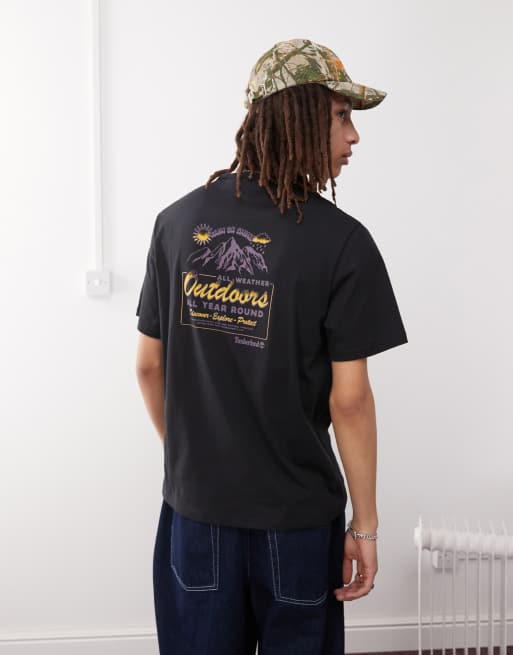 Camiseta negra con estampado trasero de paisaje de montaña de Timberland