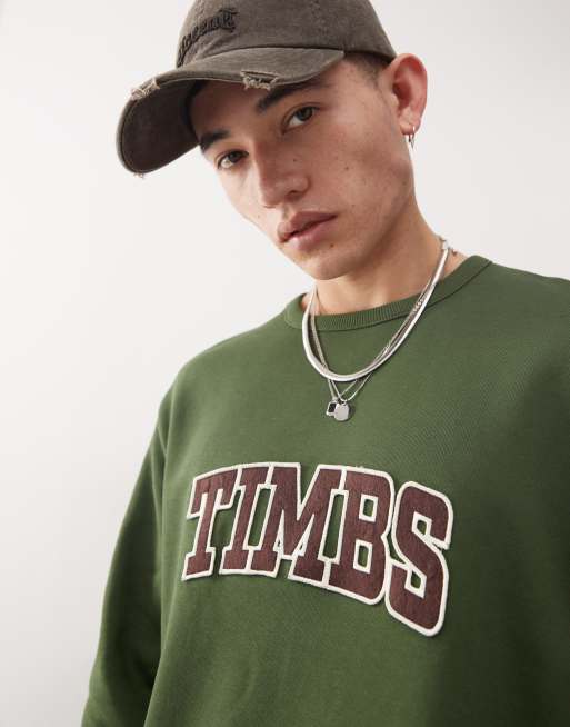 Sudadera verde oscuro con logo de texto en el pecho de bouclé de Timberland
