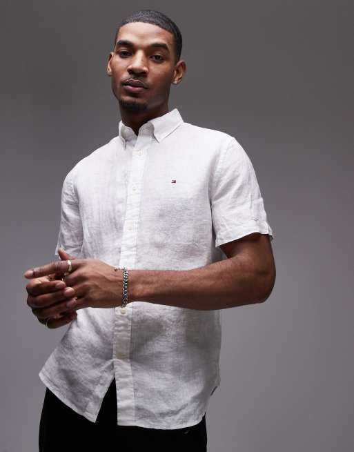 Camisa blanca de manga corta de lino de Tommy Hilfiger